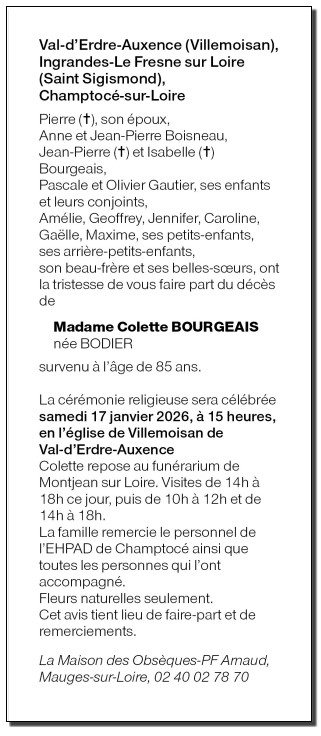 de Madame Colette BOURGEAIS née BODIER
