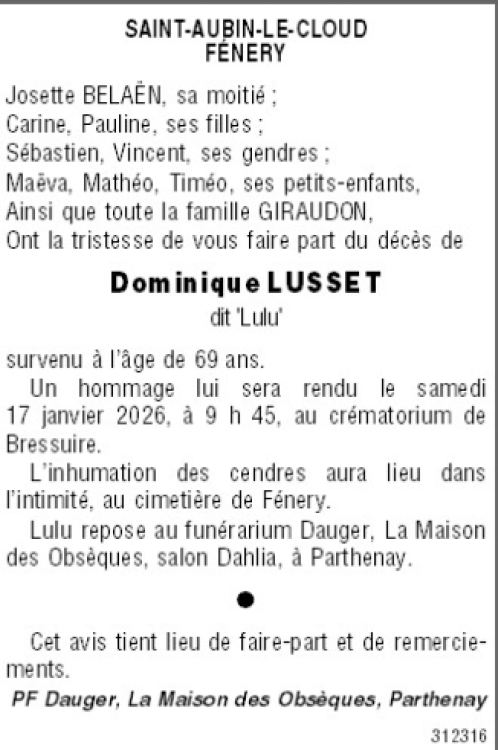 Cet espace « condoléances » est dédié à la mémoire de Monsieur Dominique LUSSET.
