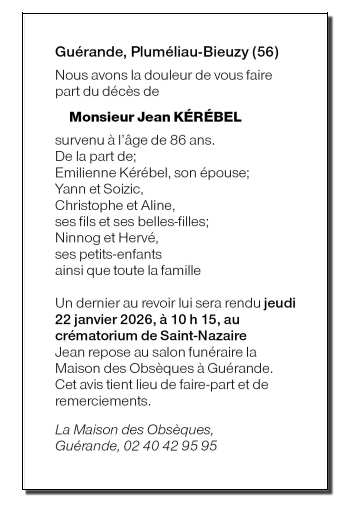 Cet espace « condoléances » est dédié à la mémoire de Monsieur Jean KÉRÉBEL.