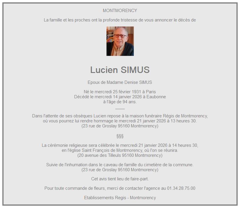 Cet espace « condoléances » est dédié à la mémoire de Monsieur Lucien SIMUS.