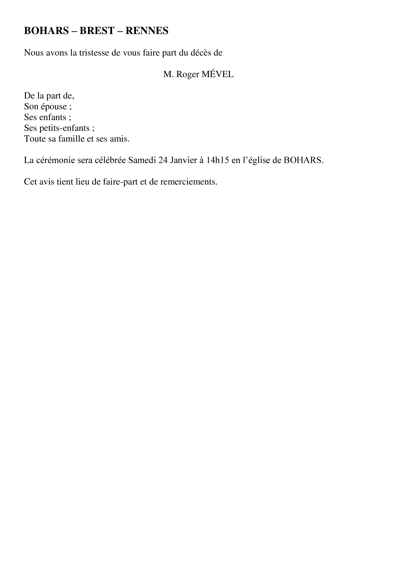de Monsieur Roger MÉVEL