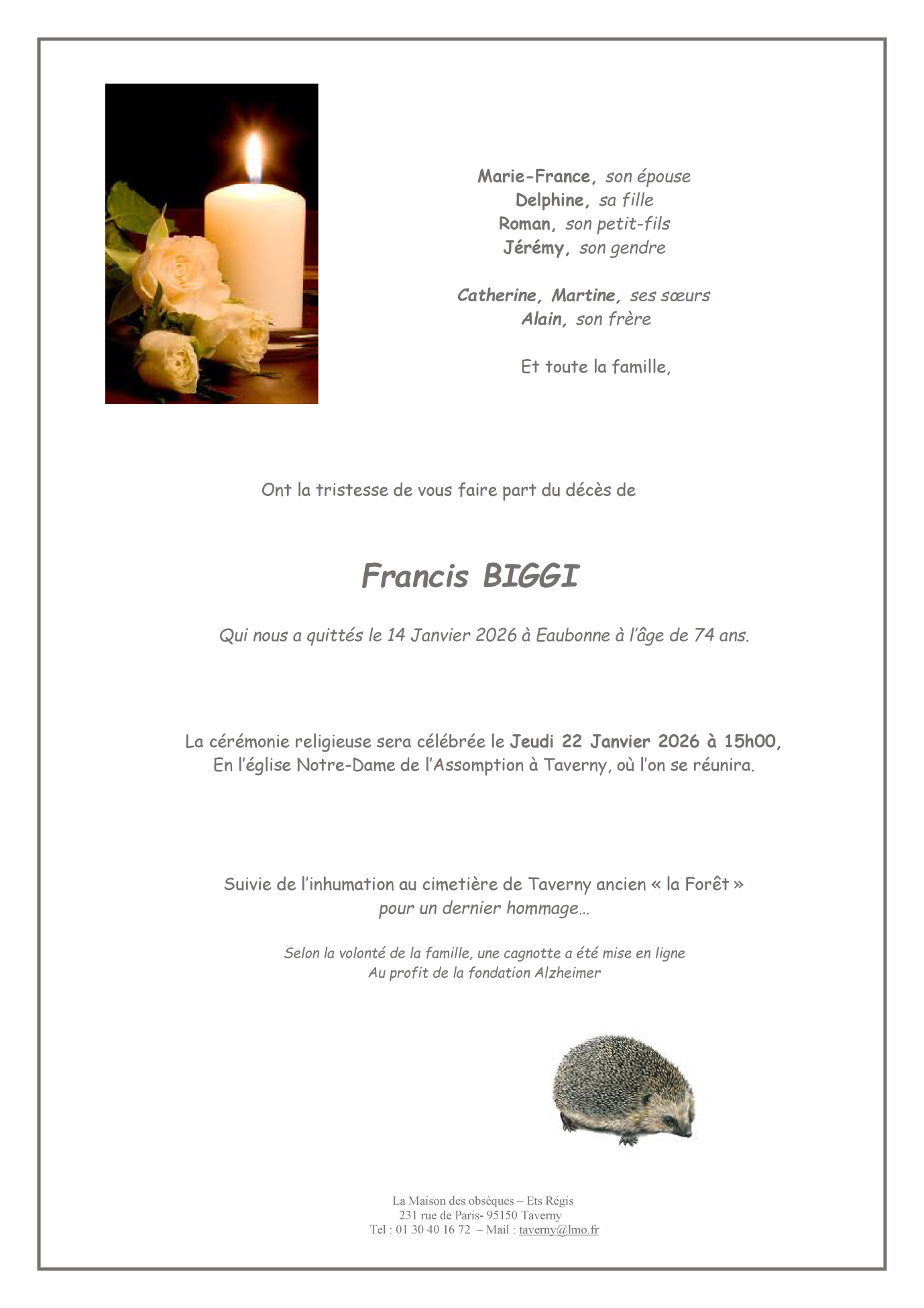 Cet espace « condoléances » est dédié à la mémoire de Monsieur Francis Dominique BIGGI.
