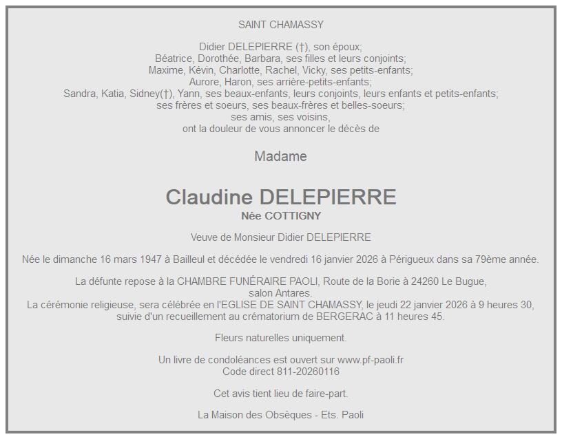 de Madame Claudine DELEPIERRE née COTTIGNY