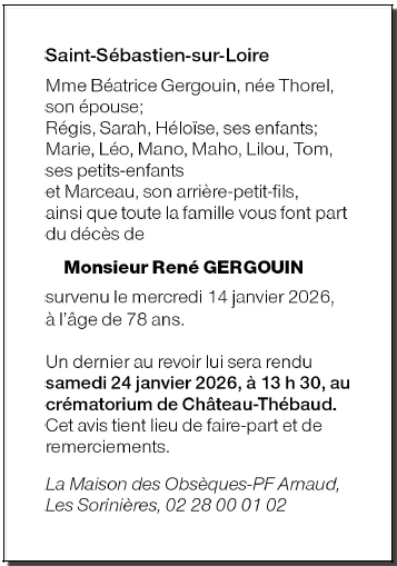 Décédé à Nantes (44300) le mercredi 14 janvier 2026
