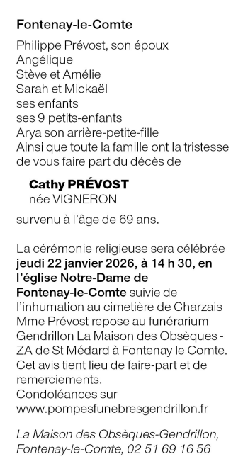 Cet espace « condoléances » est dédié à la mémoire de Madame Catherine PREVOST née PRÉVOST.