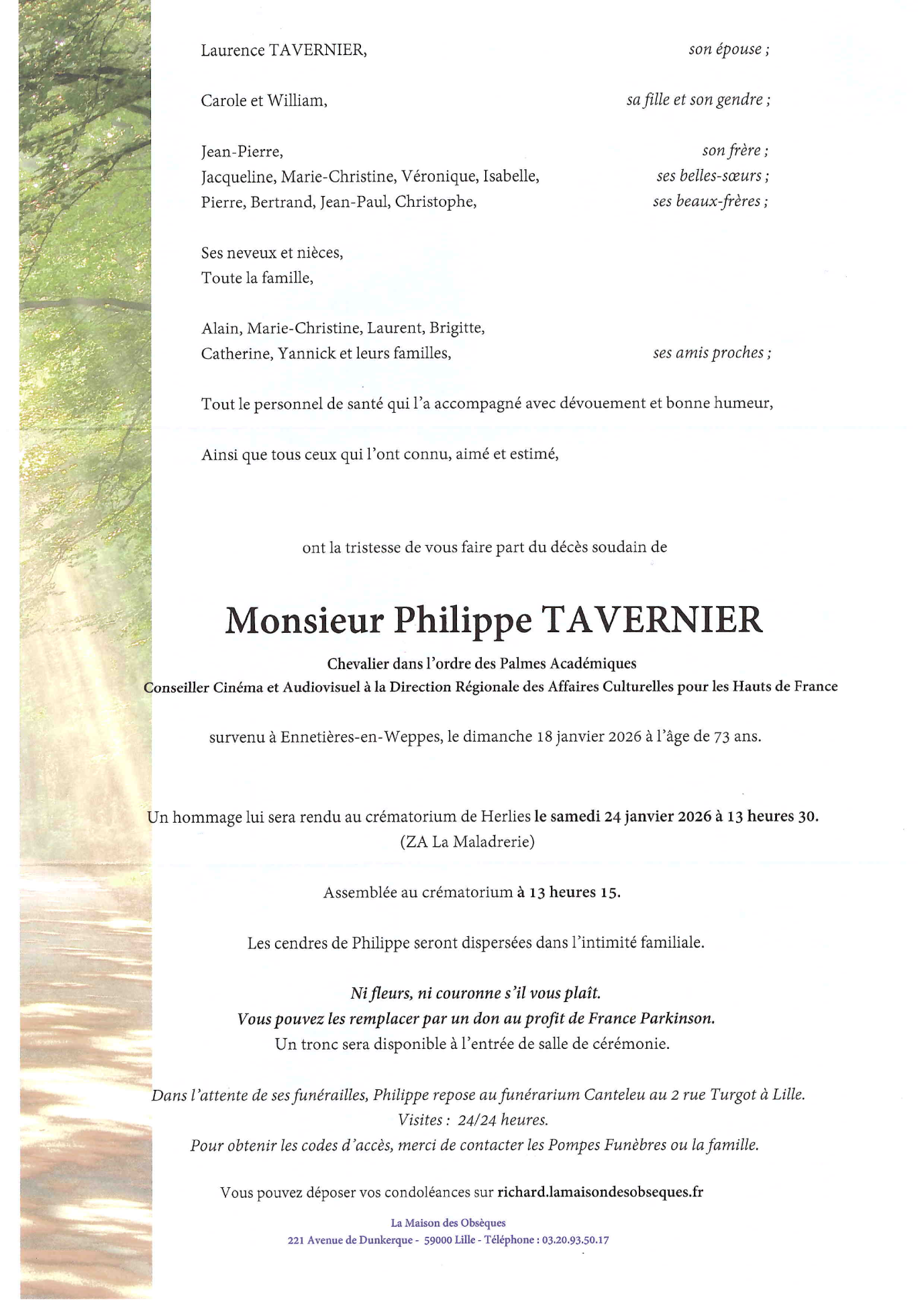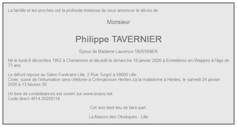 Cet espace « condoléances » est dédié à la mémoire de Monsieur Philippe TAVERNIER.