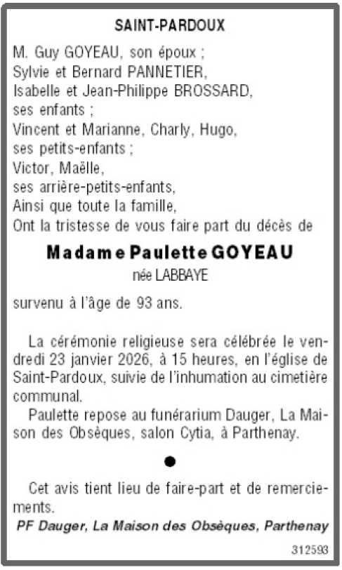 de Madame Paulette GOYEAU née LABBAYE