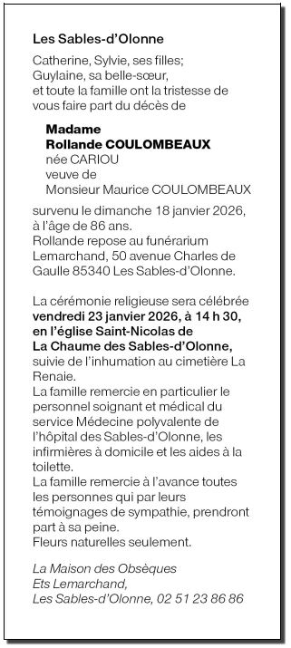 de Madame Rollande COULOMBEAUX née CARIOU