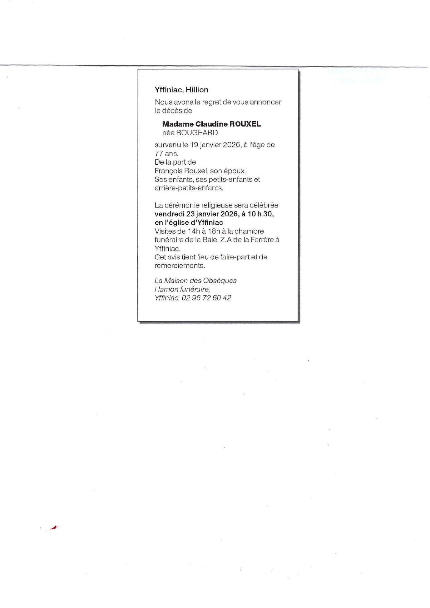 de Madame Claudine ROUXEL née BOUGEARD