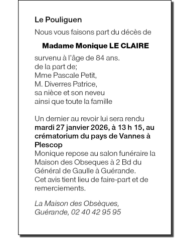 de Madame Monique LE CLAIRE née LE CUFFEC