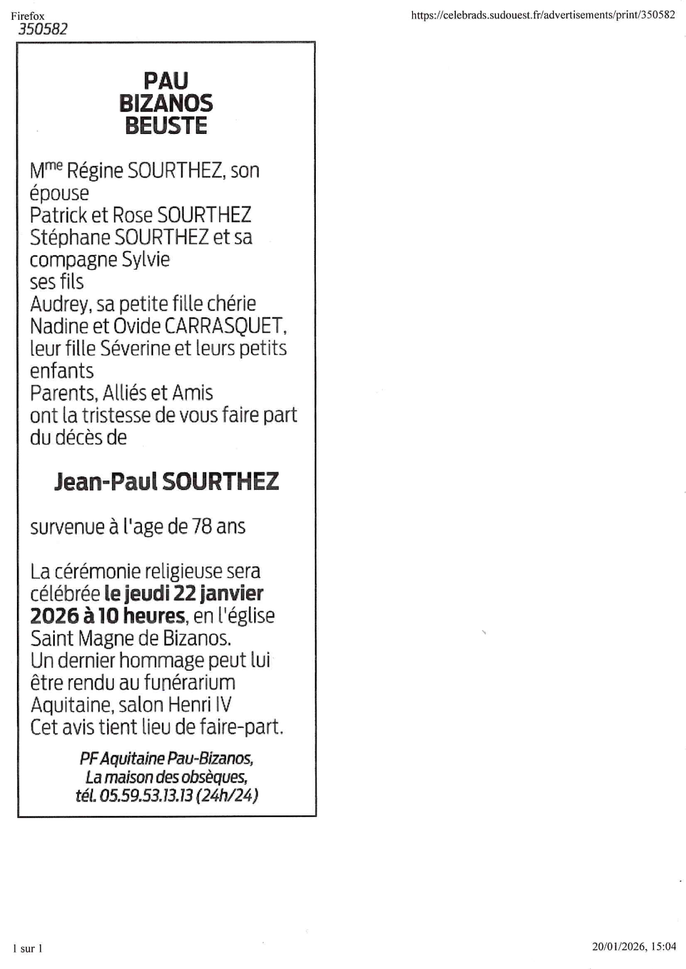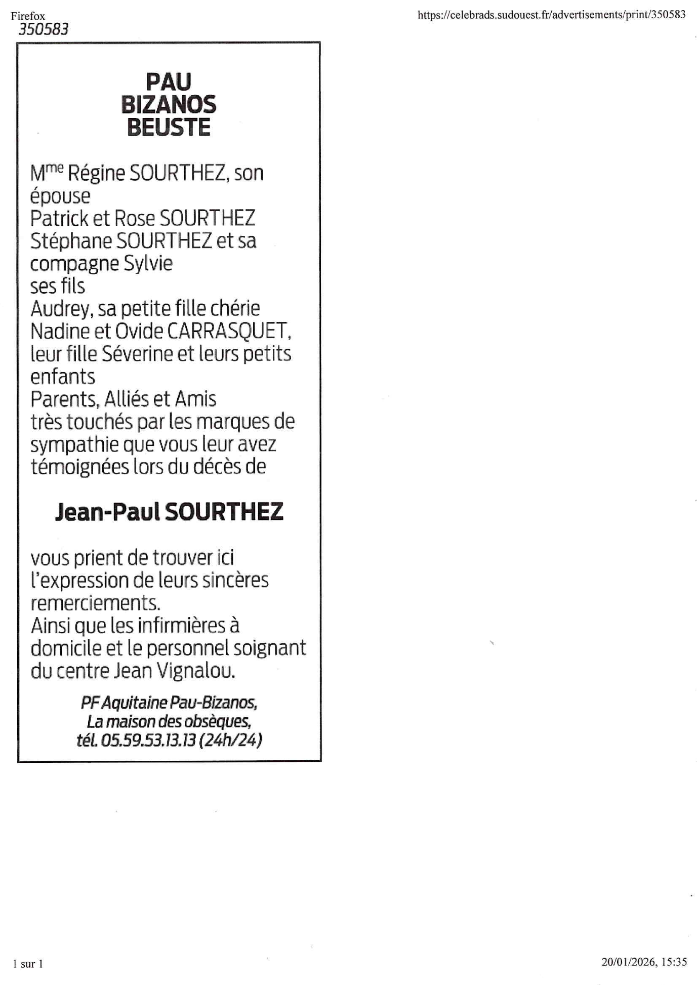 Cet espace « condoléances » est dédié à la mémoire de Monsieur Jean-Paul SOURTHEZ.