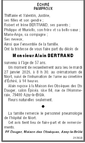 Cet espace « condoléances » est dédié à la mémoire de Monsieur Alain BERTRAND.