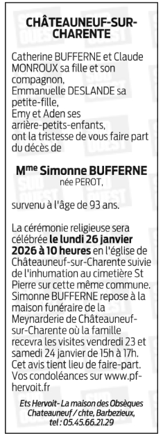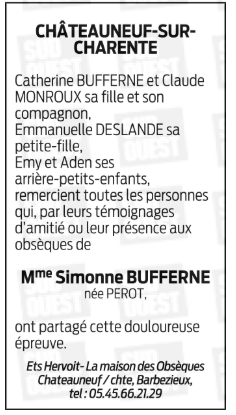 de Madame Simonne BUFFERNE née PEROT