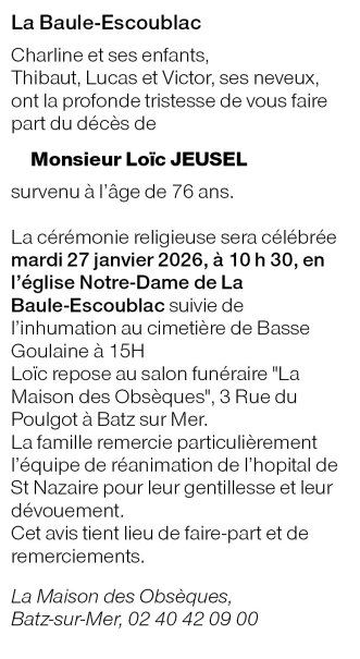 Cet espace « condoléances » est dédié à la mémoire de Monsieur Loïc JEUSEL.