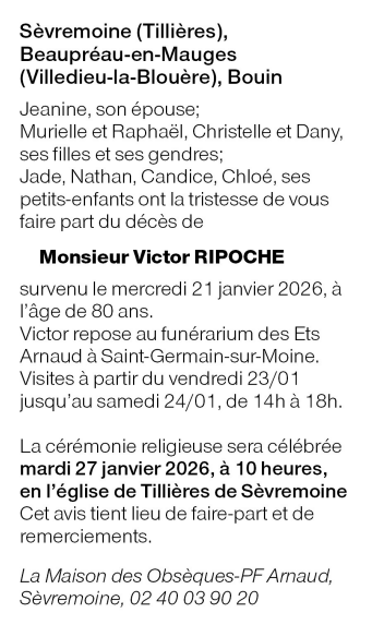 Cet espace « condoléances » est dédié à la mémoire de Monsieur Victor RIPOCHE.