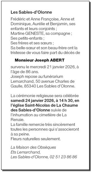 Cet espace « condoléances » est dédié à la mémoire de Monsieur Joseph ABERT.