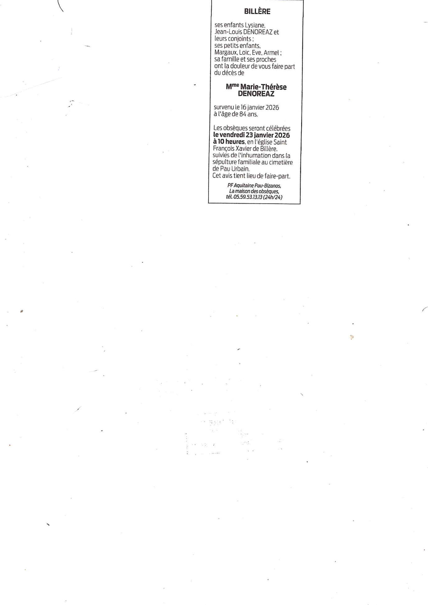 Décédée à Pau (64000) le vendredi 16 janvier 2026