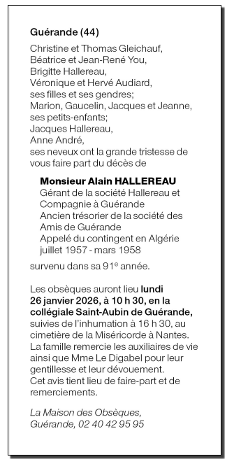 Cet espace « condoléances » est dédié à la mémoire de Monsieur Alain HALLEREAU.