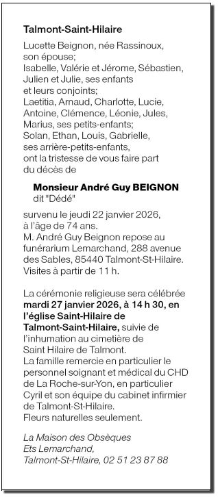 Cet espace « condoléances » est dédié à la mémoire de Monsieur André BEIGNON.
