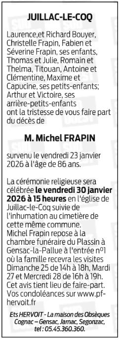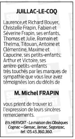 Cet espace « condoléances » est dédié à la mémoire de Monsieur Michel FRAPIN.