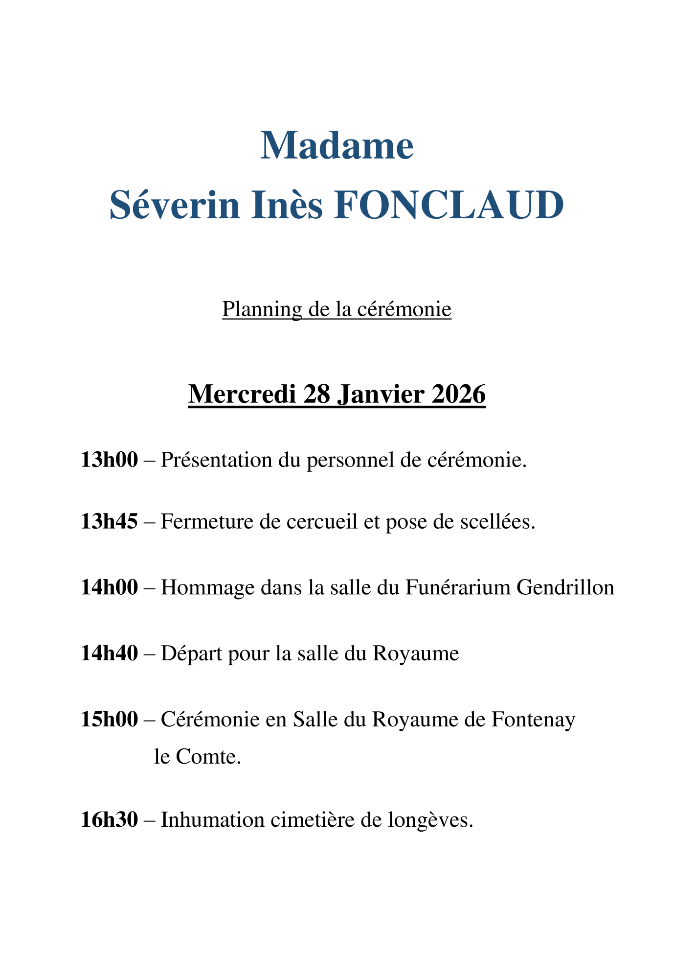 Cet espace « condoléances » est dédié à la mémoire de Madame Séverin Inès FONCLAUD née RHINO.