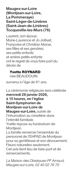 de Madame Yvette ROYNARD née BEAUDOUIN