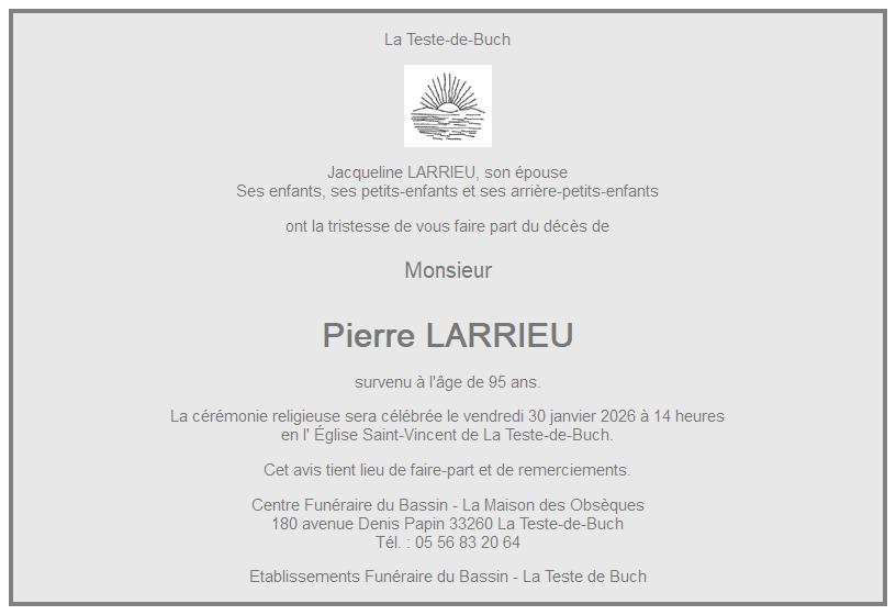 Cet espace « condoléances » est dédié à la mémoire de Monsieur Pierre LARRIEU.