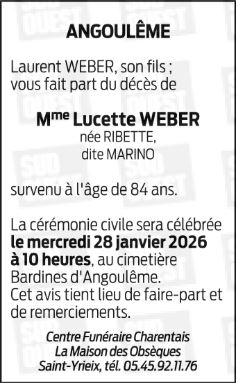de Madame LUCETTE WEBER née RIBETTE
