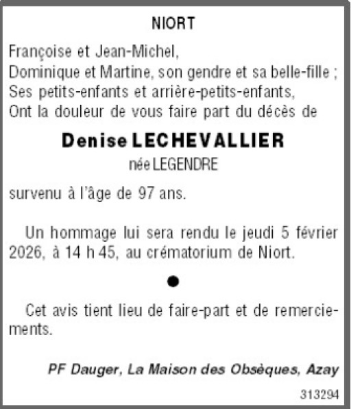 de Madame Denise LECHEVALLIER née LEGENDRE