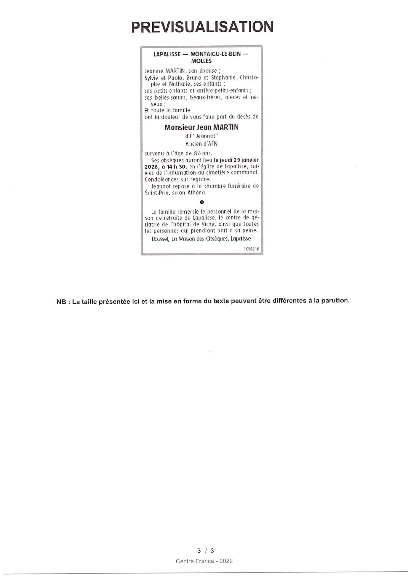 Annonce nécrologique
