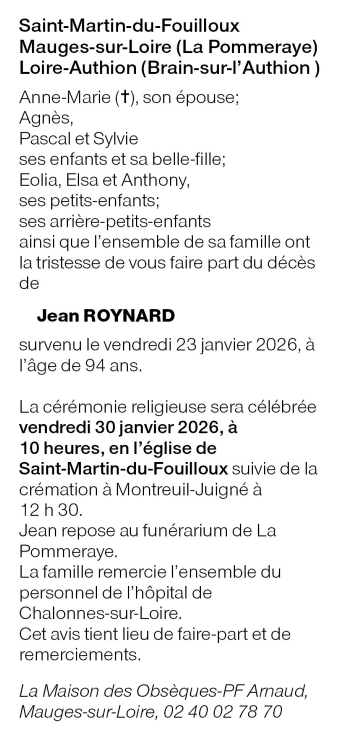 Cet espace « condoléances » est dédié à la mémoire de Monsieur Jean ROYNARD.