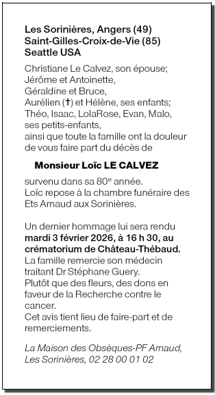 Cet espace « condoléances » est dédié à la mémoire de Monsieur Loïc LE CALVEZ.