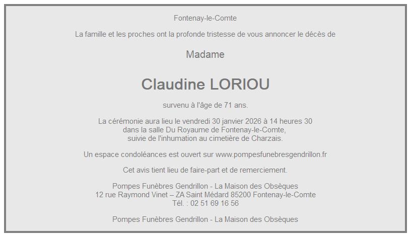 de Madame Claudine GENTIL née LORIOU