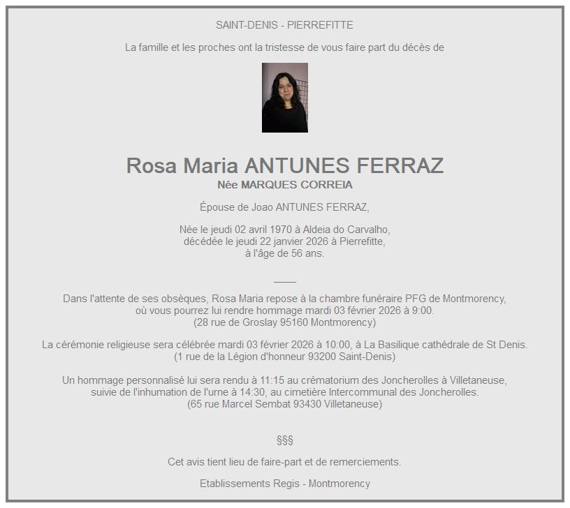 Cet espace « condoléances » est dédié à la mémoire de Madame Rosa Maria MARQUES CORREIA.