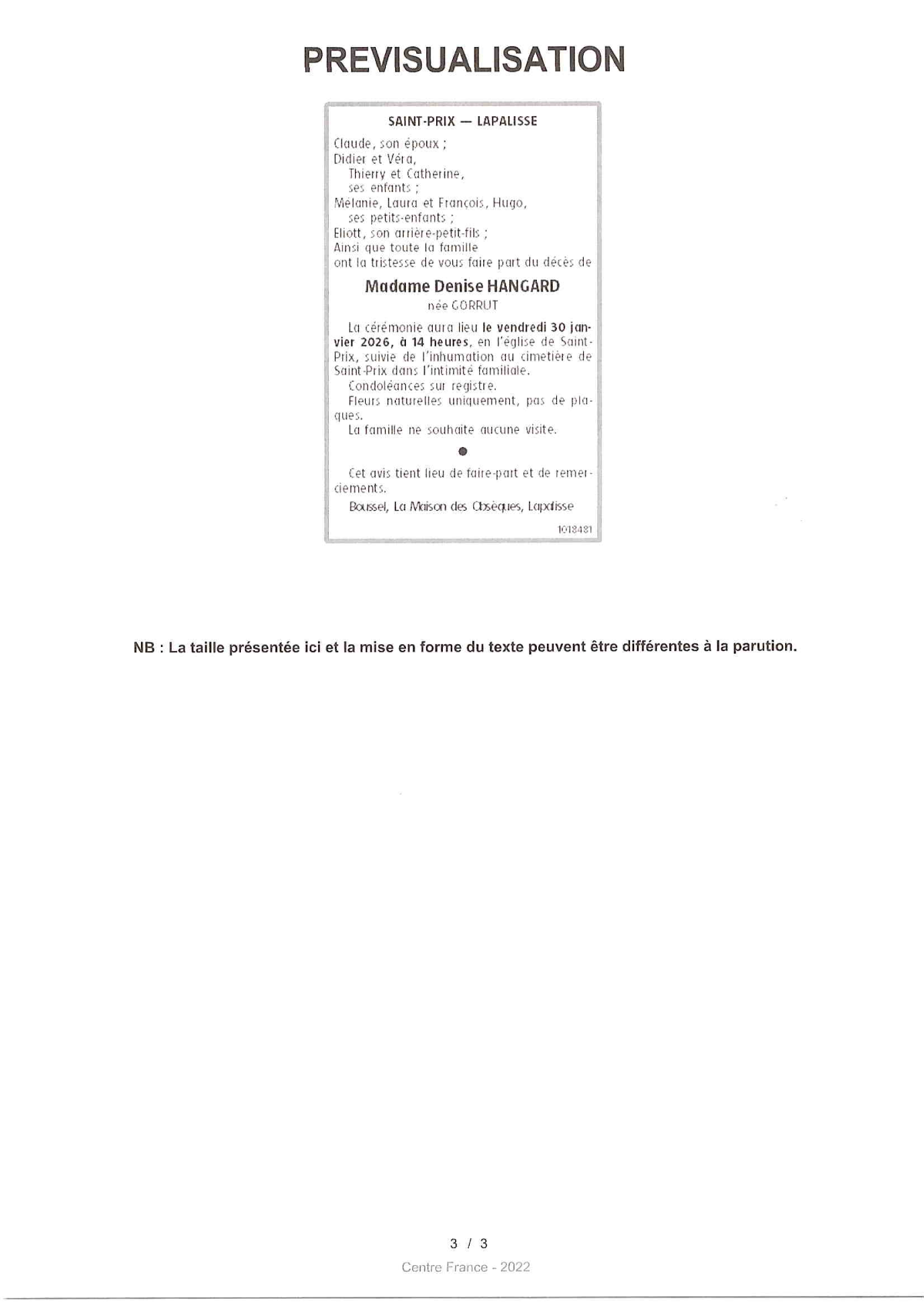 Annonce nécrologique