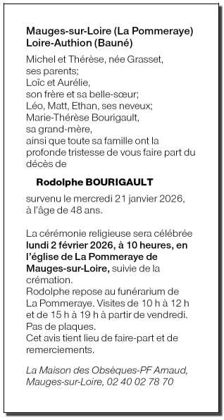 Cet espace « condoléances » est dédié à la mémoire de Monsieur Rodolphe BOURIGAULT.