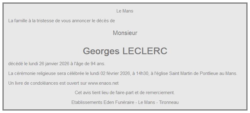 Cet espace « condoléances » est dédié à la mémoire de Monsieur Georges LECLERC.