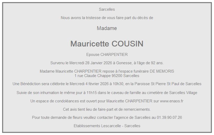 de Madame Mauricette CHARPENTIER née COUSIN