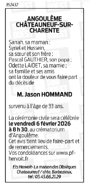Cet espace « condoléances » est dédié à la mémoire de Monsieur Jason HOMMAND.