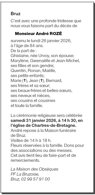 Décédé à Rennes (35700) le lundi 26 janvier 2026