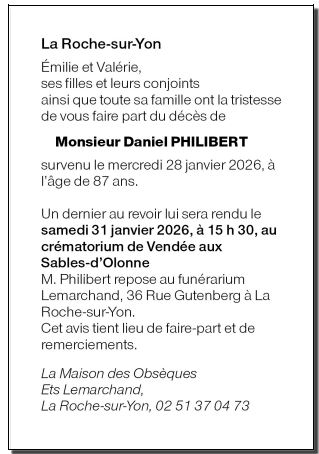 Cet espace « condoléances » est dédié à la mémoire de Monsieur Daniel PHILIBERT.
