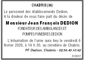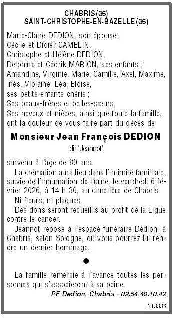 Cet espace « condoléances » est dédié à la mémoire de Monsieur Jean, François DEDION.