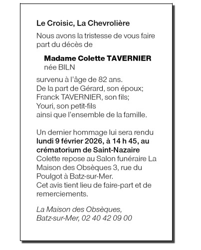 de Madame Colette TAVERNIER née BLIN