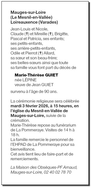 de Madame Marie Thérèse GUIET née LÉPINE