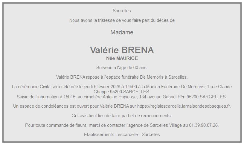 Cet espace « condoléances » est dédié à la mémoire de Madame Valérie BRENA née MAURICE.