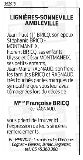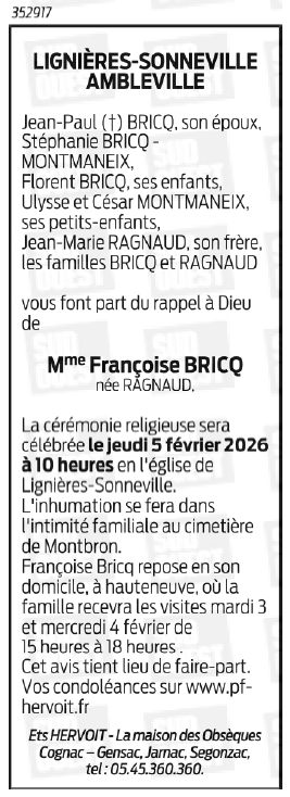 Cet espace « condoléances » est dédié à la mémoire de Madame Françoise RAGNAUD.
