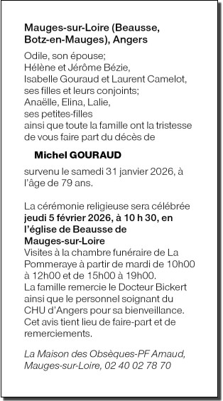 Cet espace « condoléances » est dédié à la mémoire de Monsieur Michel GOURAUD.