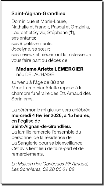 de Madame Arlette LEMERCIER née DELACHAISE