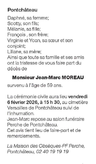 Cet espace « condoléances » est dédié à la mémoire de Monsieur Jean-Marc MOREAU.