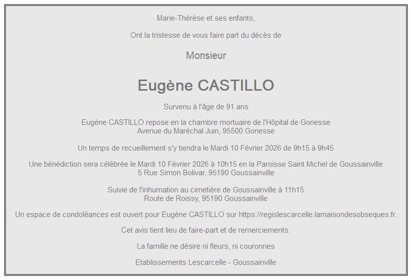 Cet espace « condoléances » est dédié à la mémoire de Monsieur Eugène CASTILLO.
